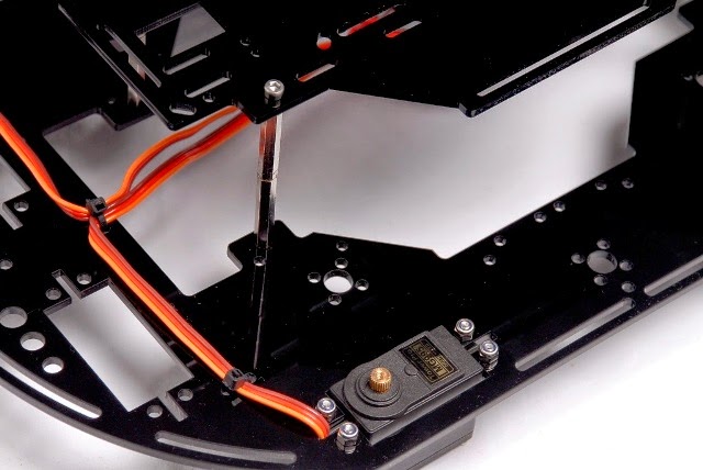 Los 4 servos montados en el chasis superior. |